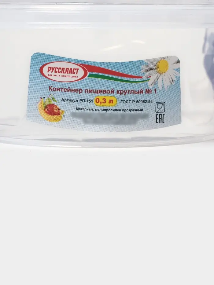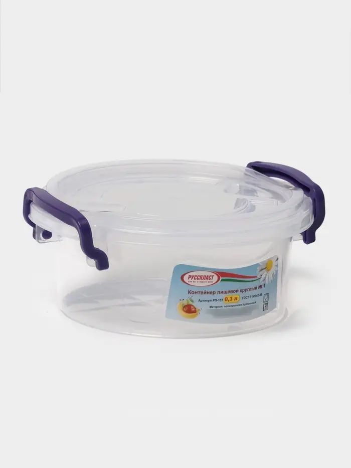 Контейнер пищевой, 300 мл, d=12 см, h=5 см, круглый, прозрачный, голубой