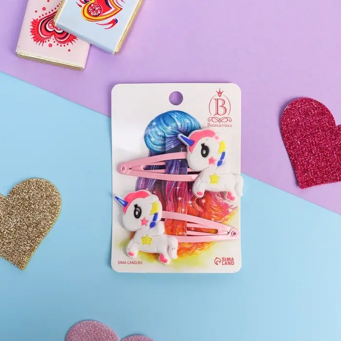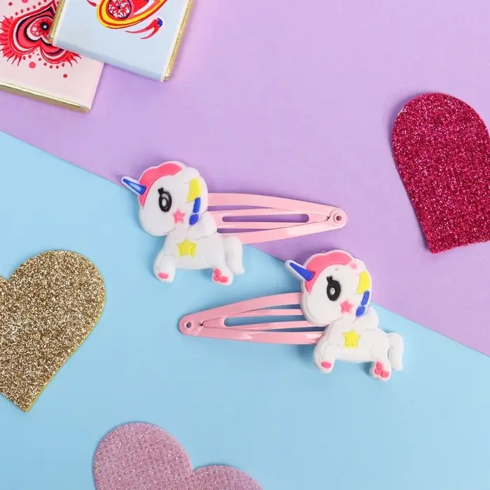 Невидимка для волос "Абель" (набор 2 шт) белый единорог, 5 см