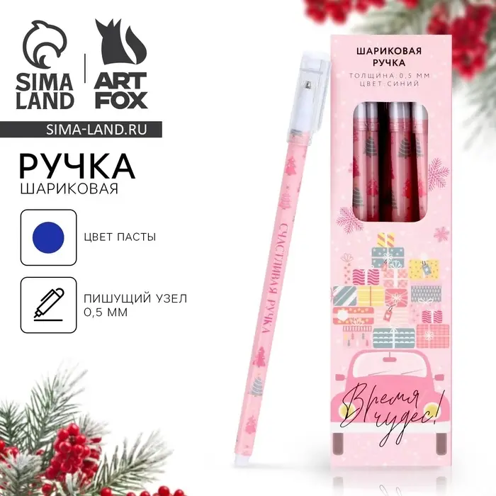 Ручка шариковая, синяя паста, 0.5 мм, пластик, с колпачком «Новый год: Время чудес!»