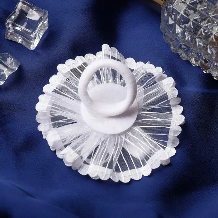 Резинка для волос бант «Школьница», лучики серединка блеск, d=7 см, белая