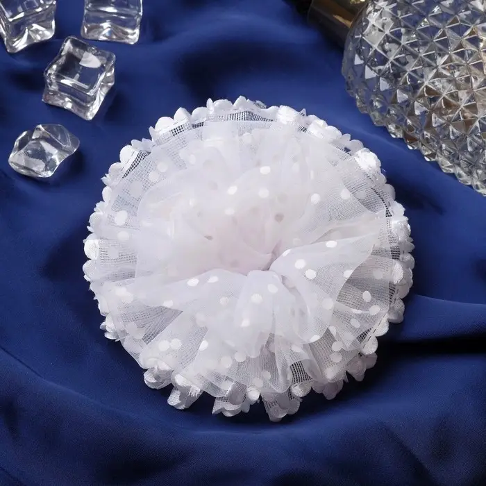 Резинка для волос бант «Школьница», нежность горошек, d=11 см, белая