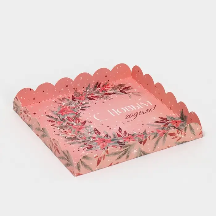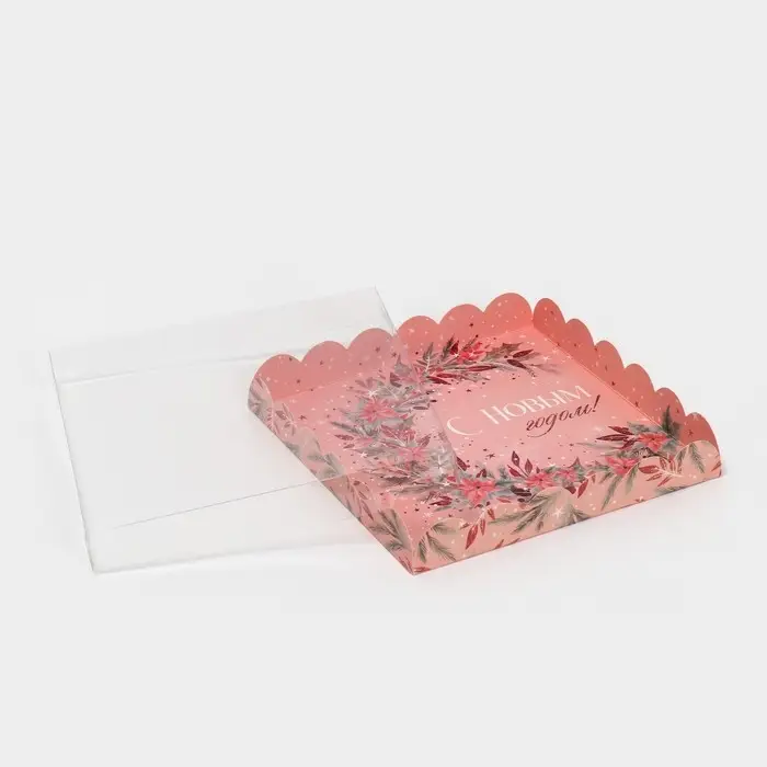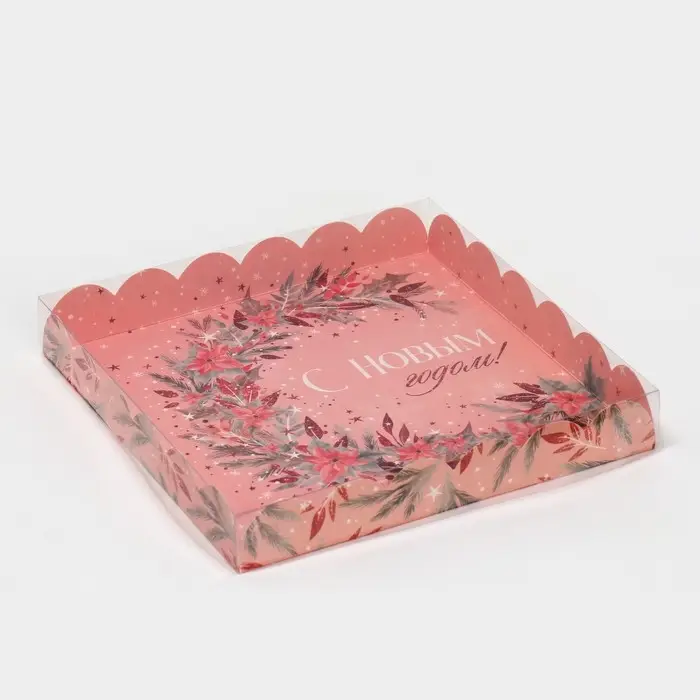 Коробка для кондитерских изделий с пластиковой крышкой «Зимние цветы», 21 х 21 х 3 см