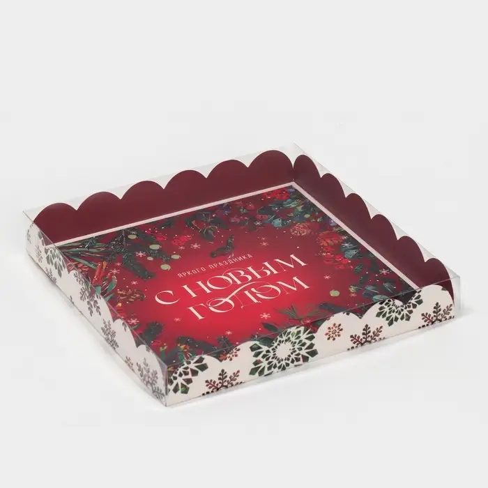 Коробка для кондитерских изделий с пластиковой крышкой «Яркого праздника», 21 х 21 х 3 см