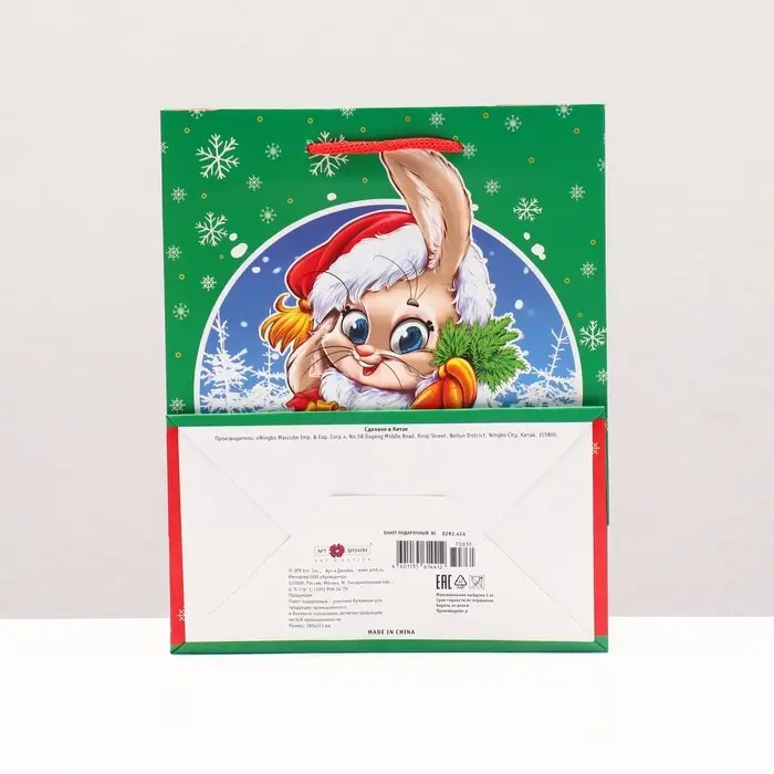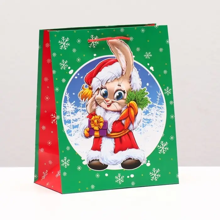 Пакет подарочный «Зайчик Дед Мороз» , 18×22.3×10 см