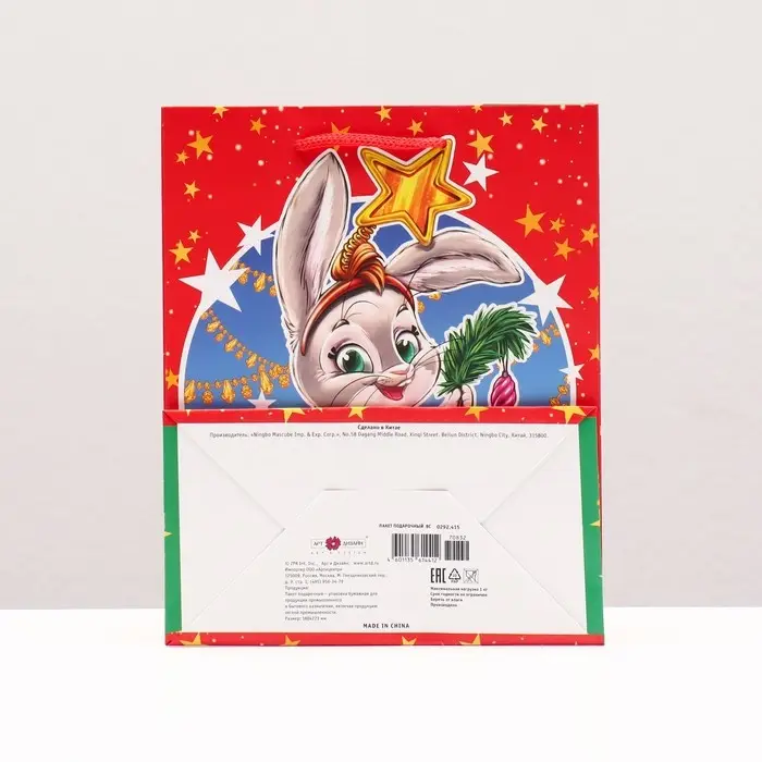 Пакет подарочный "Зайчик звёздочка" , 18 х 22,3 х 10 см.