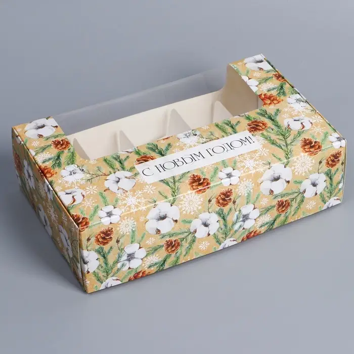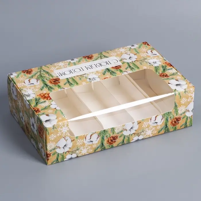 Коробка для эклеров с вкладышами - 5 шт «Эко Новый год», 25,2 х 15 х 7 см