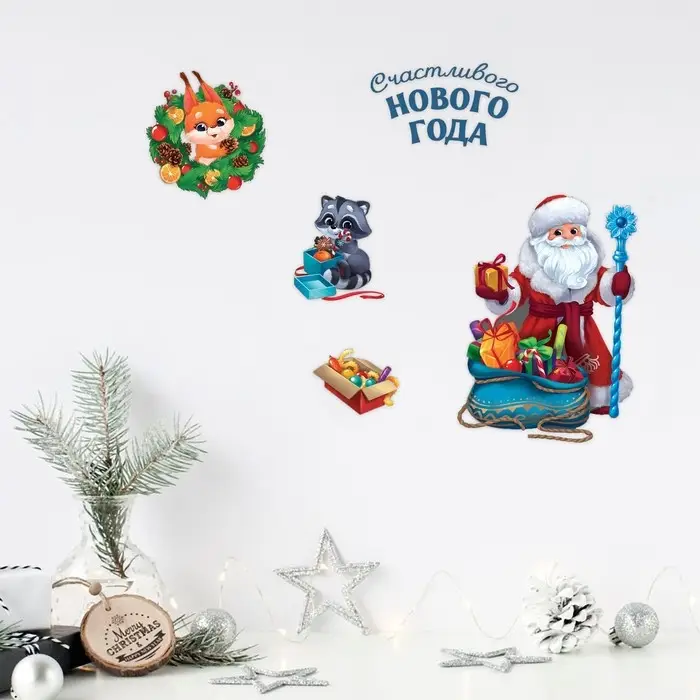 Наклейки новогодние со светящимся слоем «Счастливого Нового года», 10.5 х 14.8 см