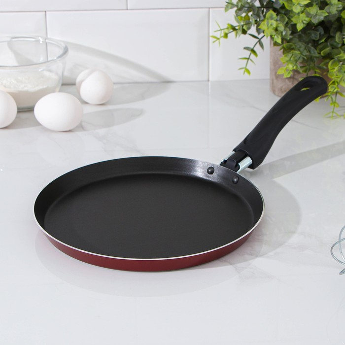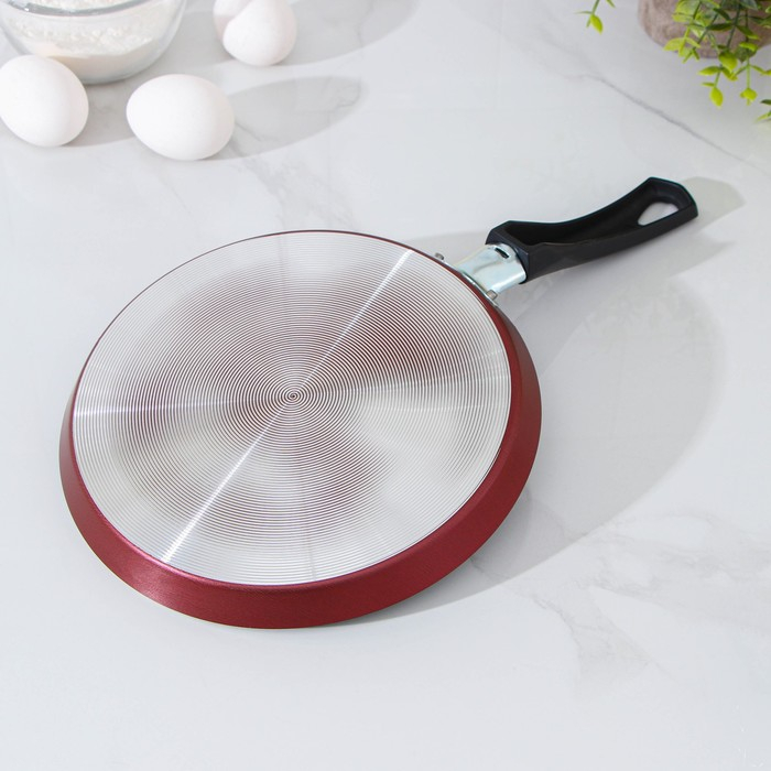 Сковорода блинная Доляна Promo, d=22 см, пластиковая ручка, антипригарное покрытие, цвет бордовый