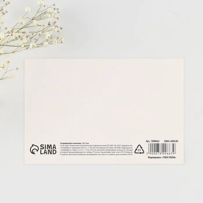 Открытка, лотерейный билет «Лотерея любви», 10 х 15 см.