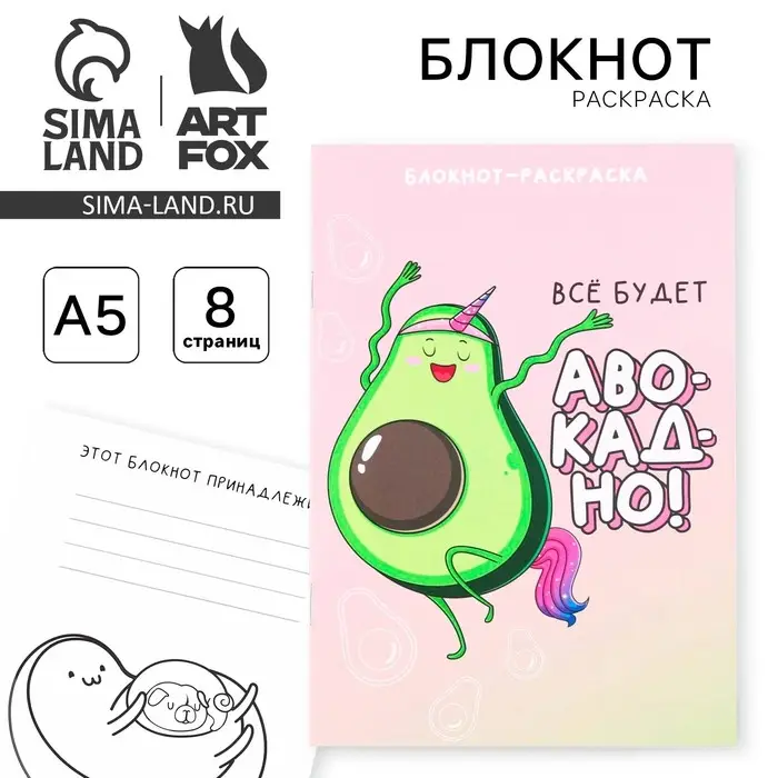 Блокнот раскраска А5, 8 страниц «Авокадо»