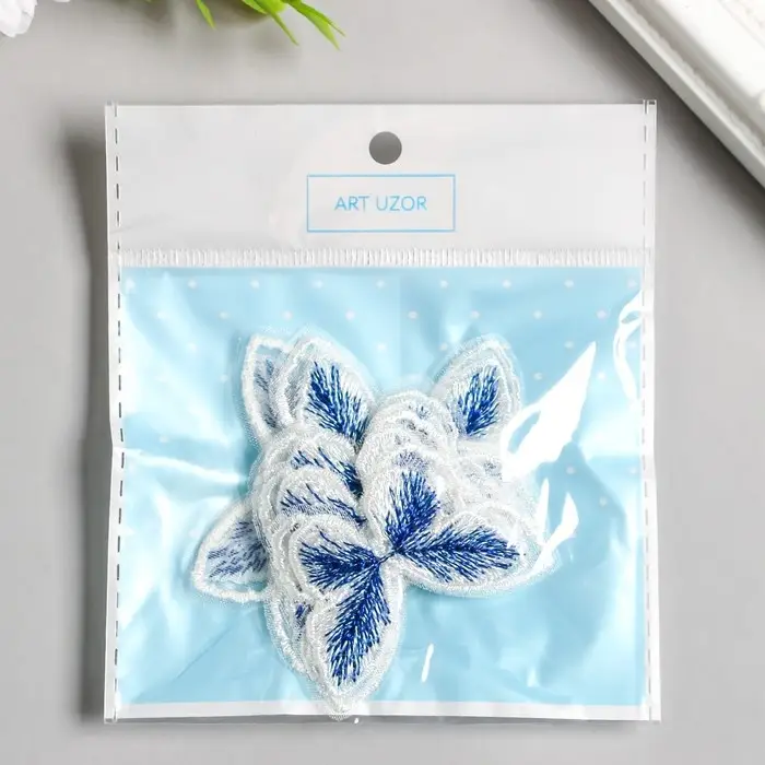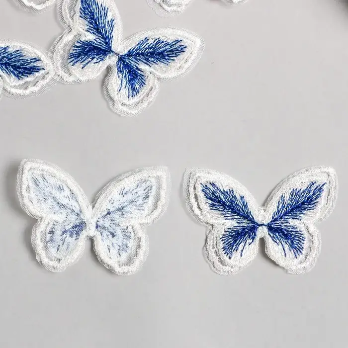 Декор для творчества текстиль вышивка "Бабочка бело-синяя" двойные крылья 3,7х4,5 см