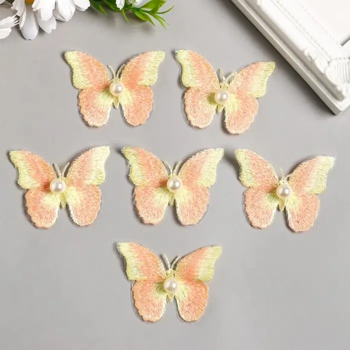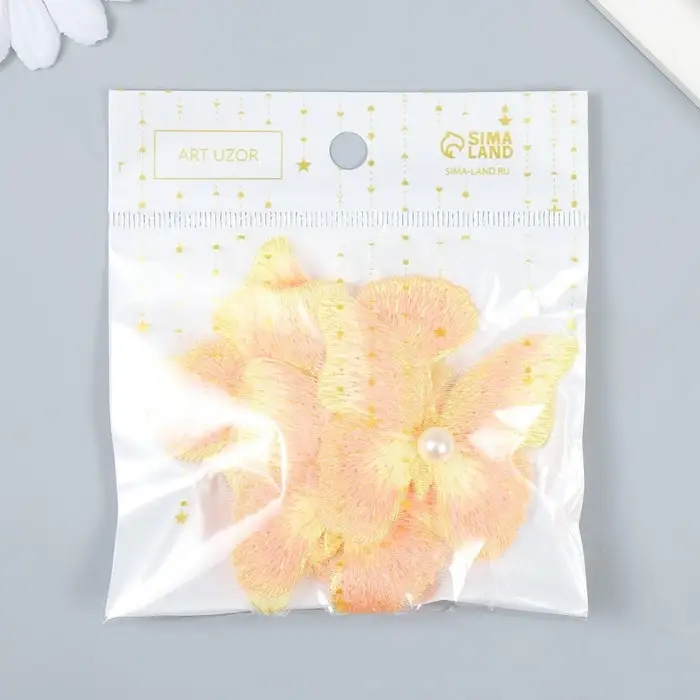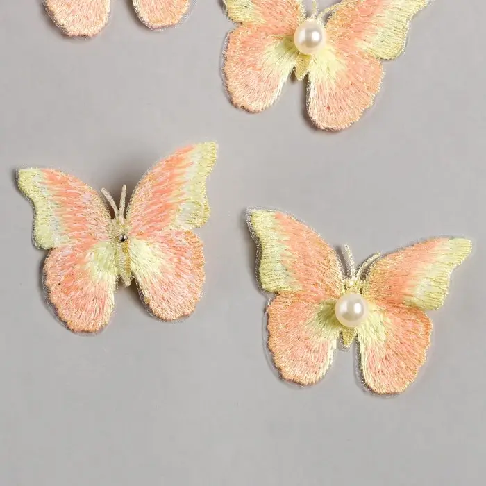 Декор для творчества текстиль вышивка "Бабочка жёлто-оранжевая" двойные крылья 5х6 см
