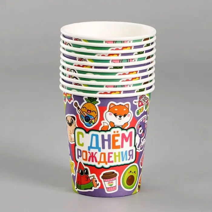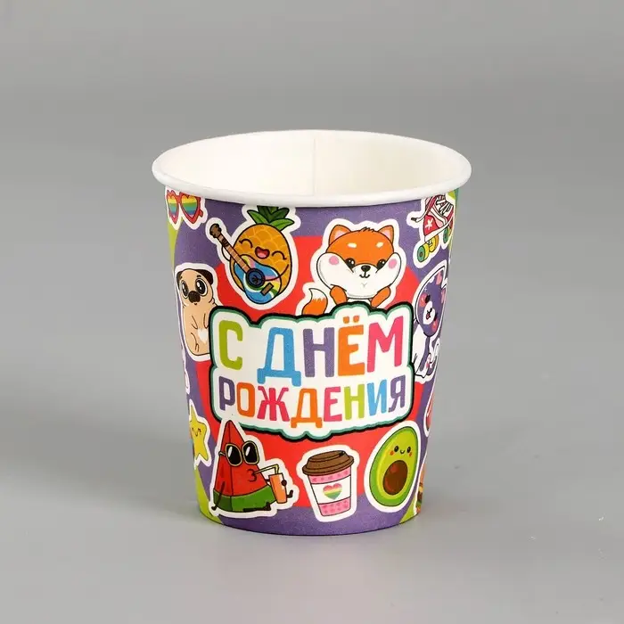 Стакан одноразовый бумажный «С Днём Рождения», 250 мл