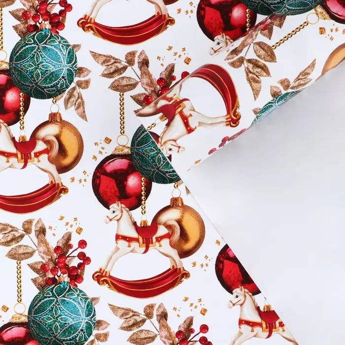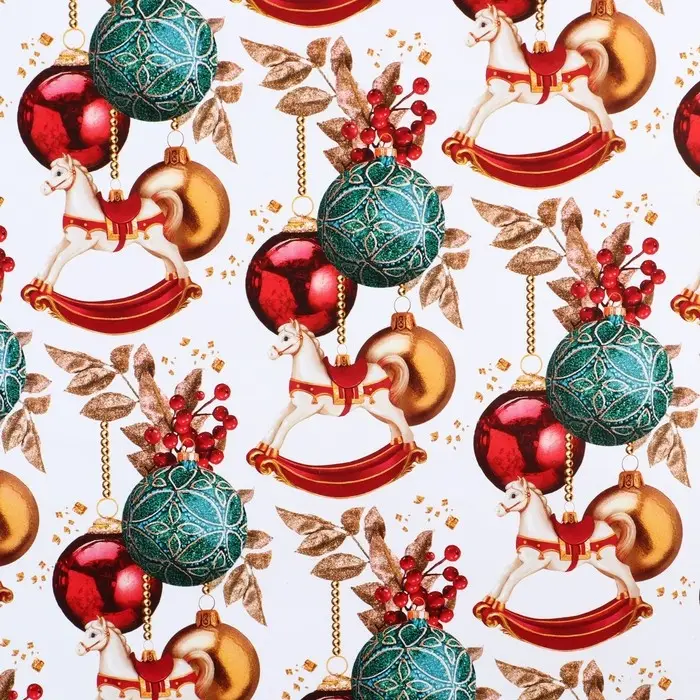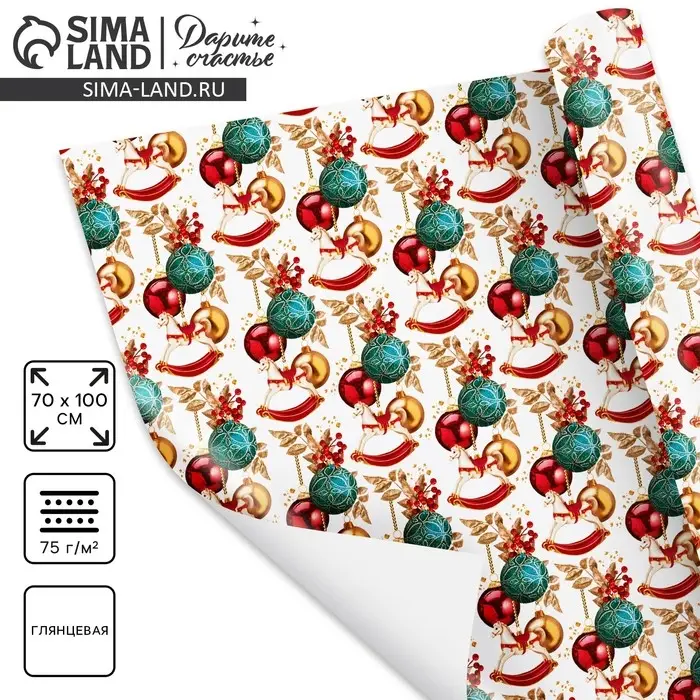 Упаковочная бумага на новый год «Новогодние игрушки», 70 х 100 см, глянцевая