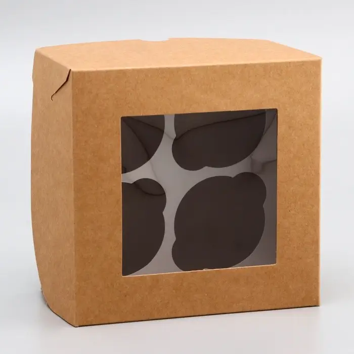 Коробка для 4 капкейка с окном, крафт, 16×16×10 см