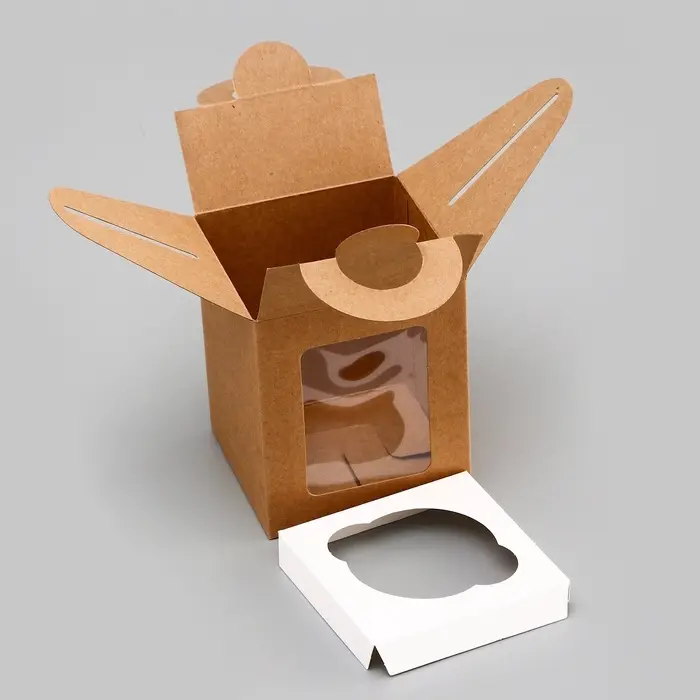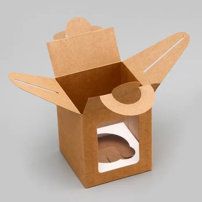 Коробка для 1 капкейка, крафт, 9.2×9.2×11.1 см