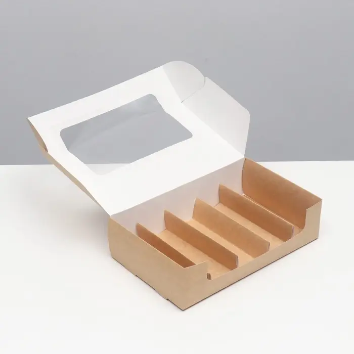 Коробка складная, под 5 эклеров, крафт, 25×15×6.6 см