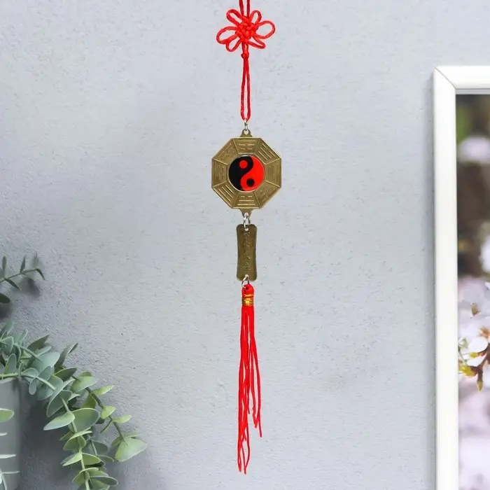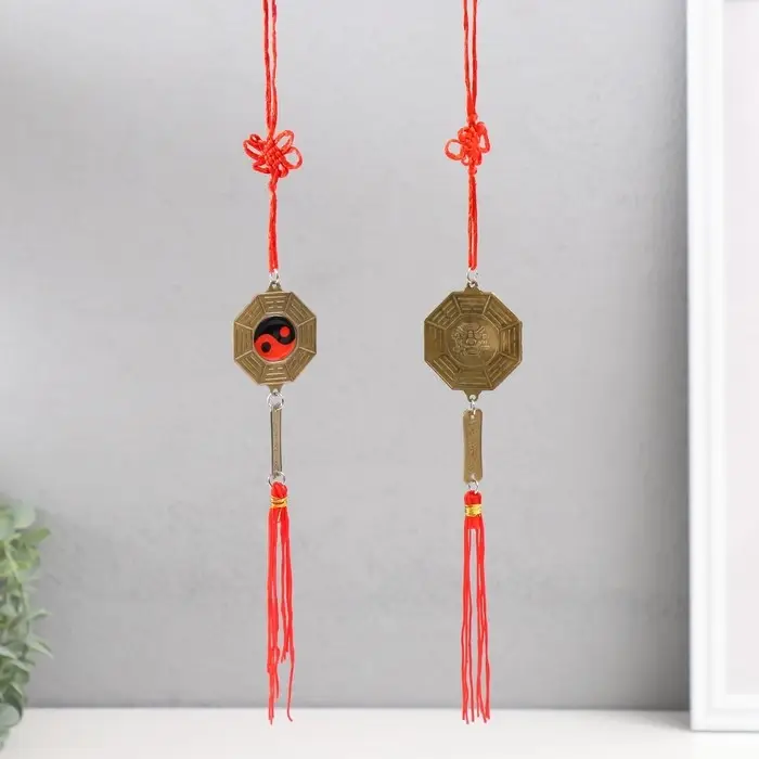 Подвеска металл "Зеркало Багуа" с узлом счастья 4,5х24 см МИКС