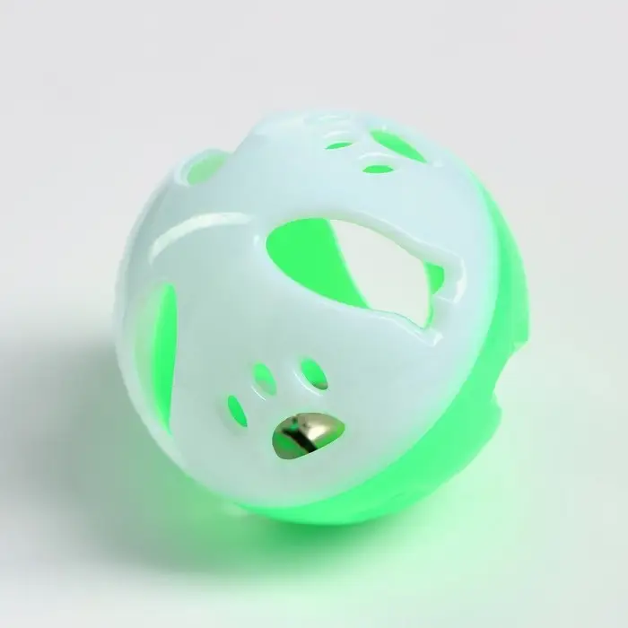 Шарик для кошек с бубенчиком "Рыбки и лапки", 3,8 см, белый/зелёный