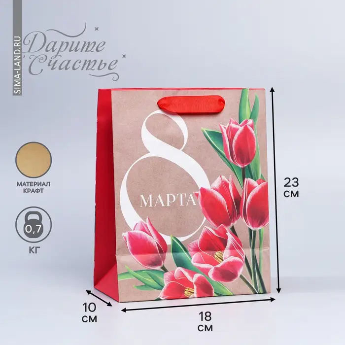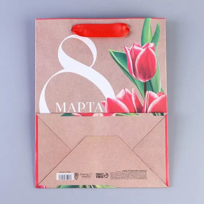 Пакет подарочный крафтовый, упаковка, «8 марта», MS 23 х 18 х 10 см
