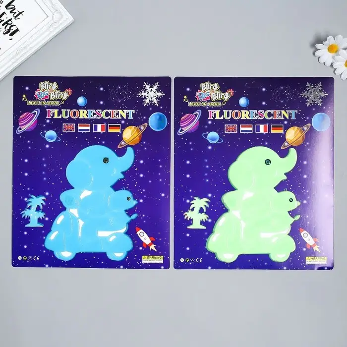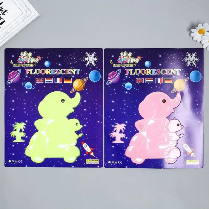 Наклейка фосфорная "Слонята на мопеде" с клеевыми подушечками набор 2 шт МИКС 29,5х25 см