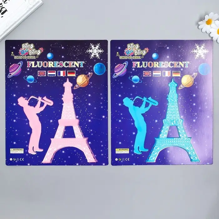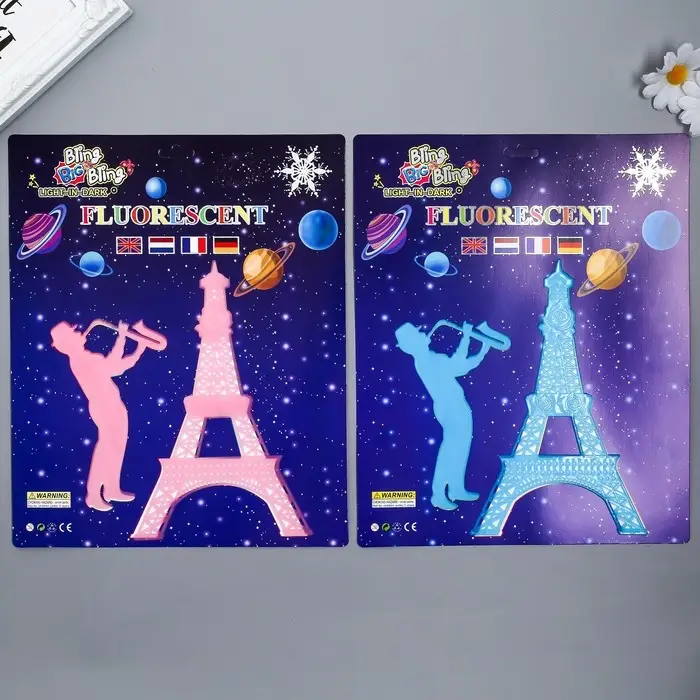 Наклейка фосфорная "Эйфелева башня и саксофонист" с клеев.подуш. набор 2 шт МИКС 29,5х25 см 788219