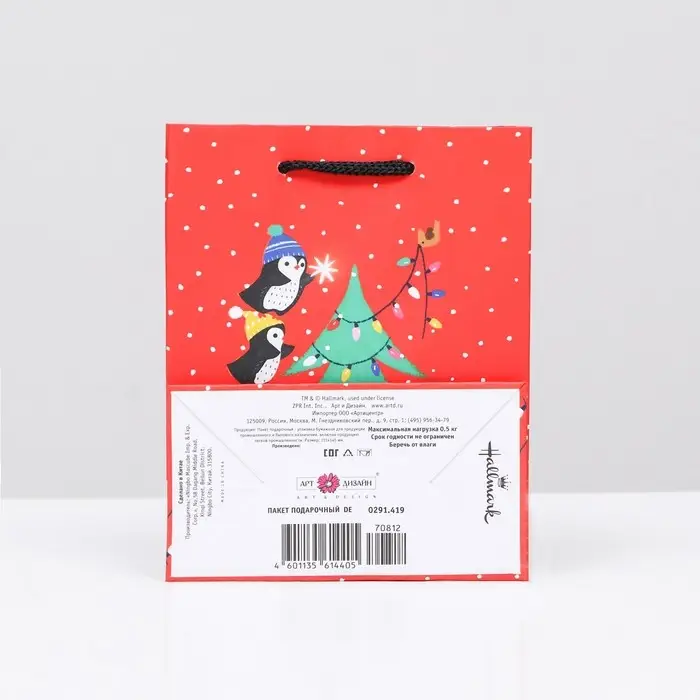 Новогодний подарочный пакет с ярким, красочным рисунком создаст праздничное настроение.