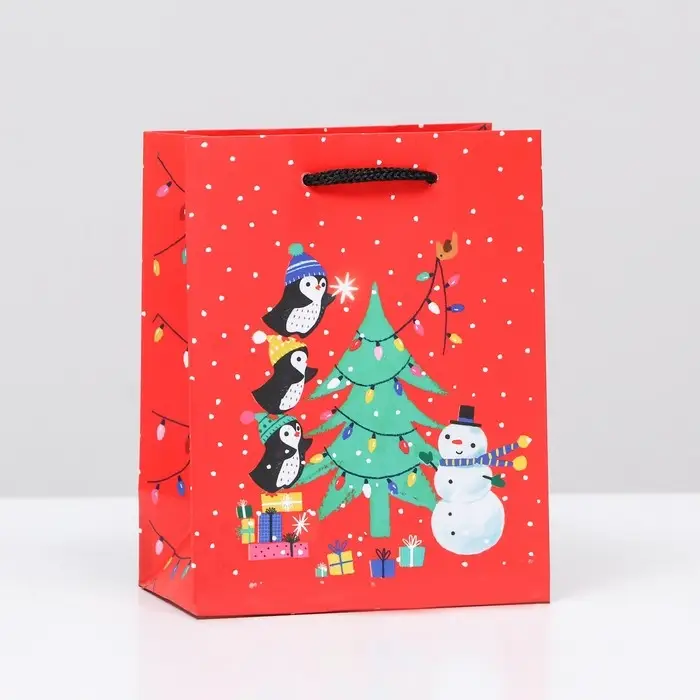 Пакет подарочный "Пингвины на ёлке", 11,5 х 14,5 х 6,5 см.