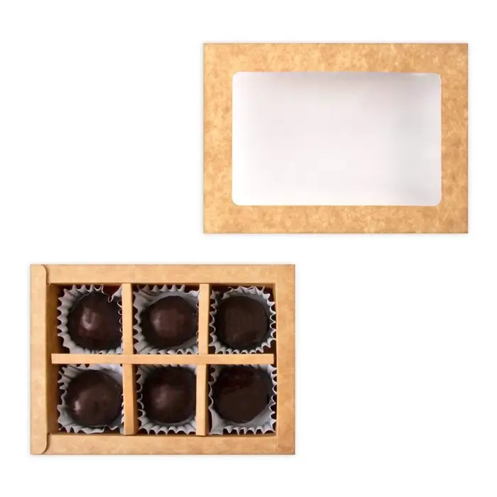 Коробка для 6 конфет с окном, крафт, 13.7×9.85×3.85 см
