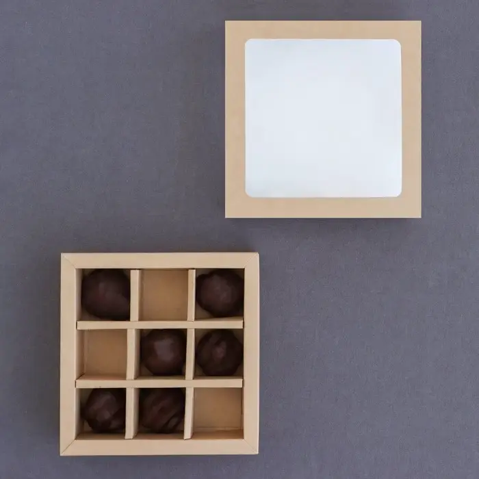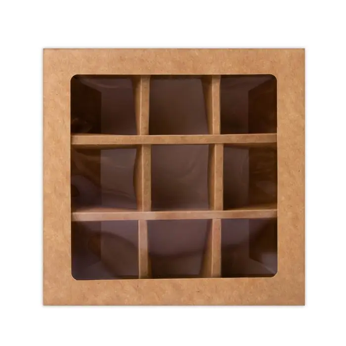 Коробка для 9 конфет, крафт, 13.5×13.5×3.2 см
