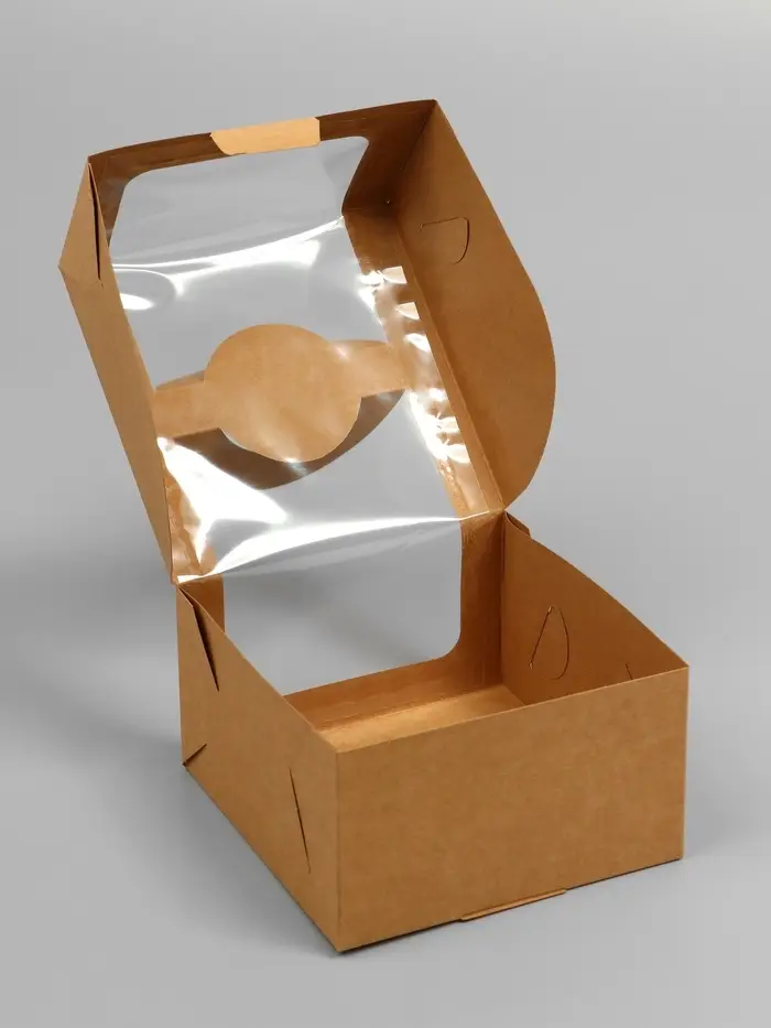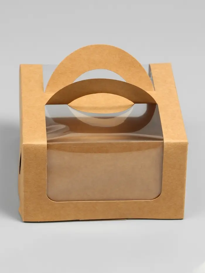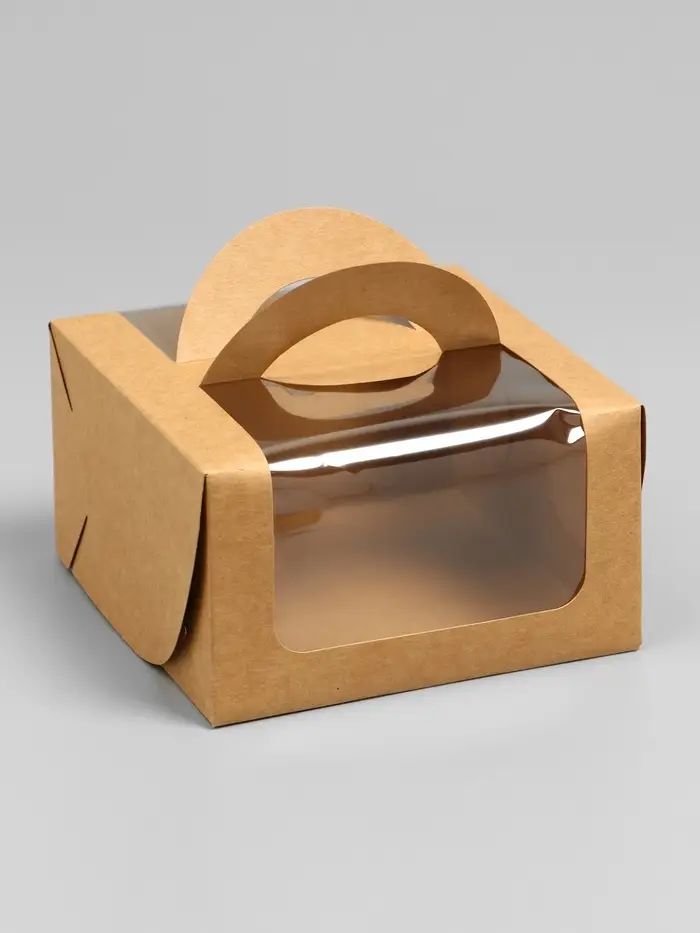 Коробка под бенто-торт с окном, крафт, 14 х 14 х 8 см