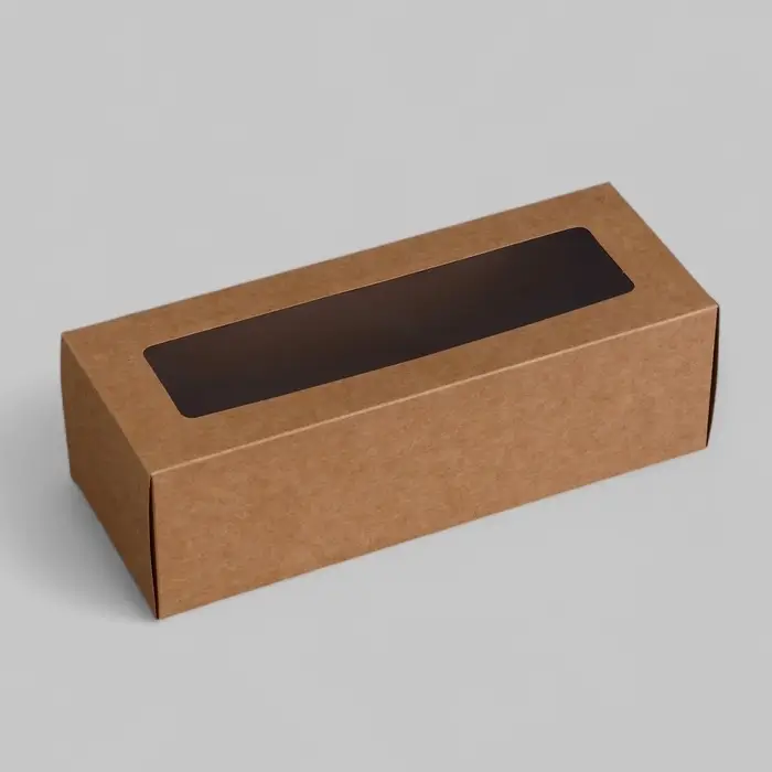 Коробка с окном под рулет, крафт, 26×10×8 см