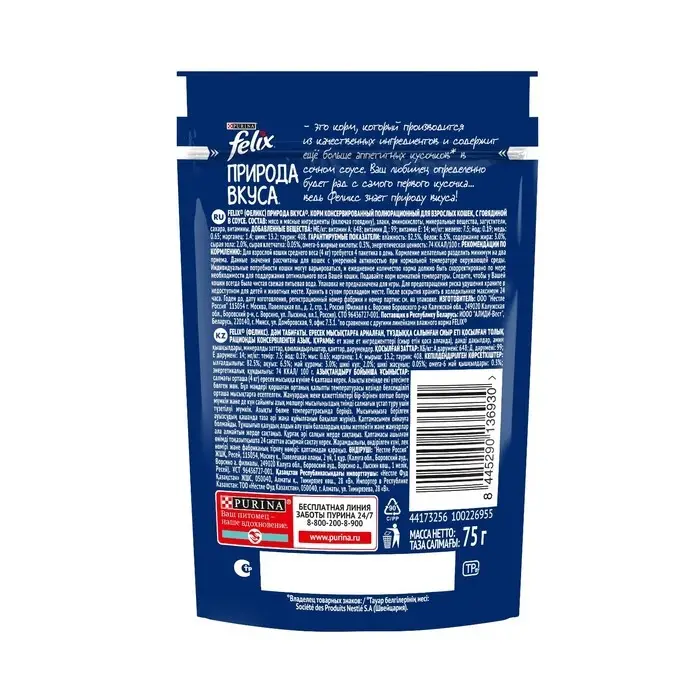 Влажный корм Felix Природа вкуса для кошек, говядина, 75 г