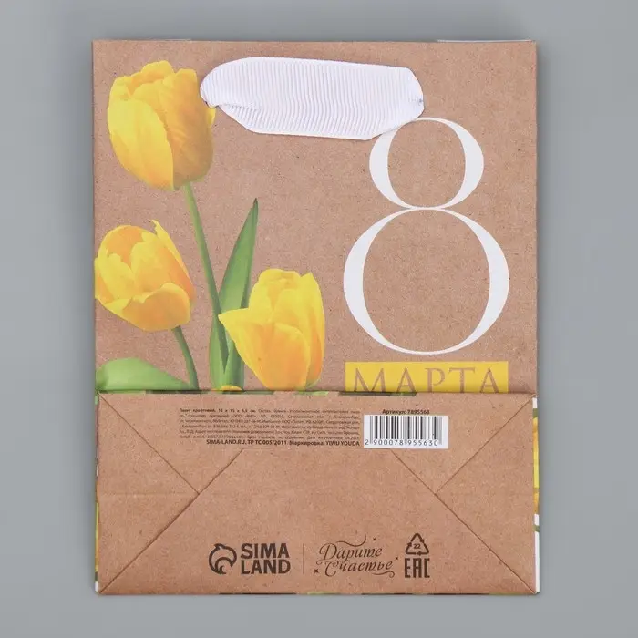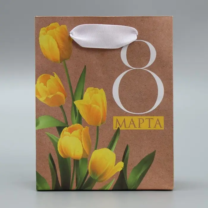 Пакет подарочный крафтовый, упаковка, «8 марта», S 12 х 15 х 5.5 см