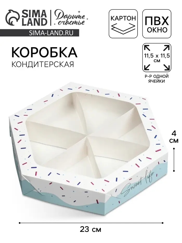 Коробка кондитерская, упаковка, Sweet life, 23 х 20 х 4 см