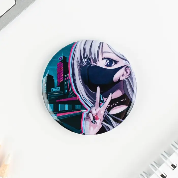 Значок закатной «Аниме девушка в городе», d = 5,6 см