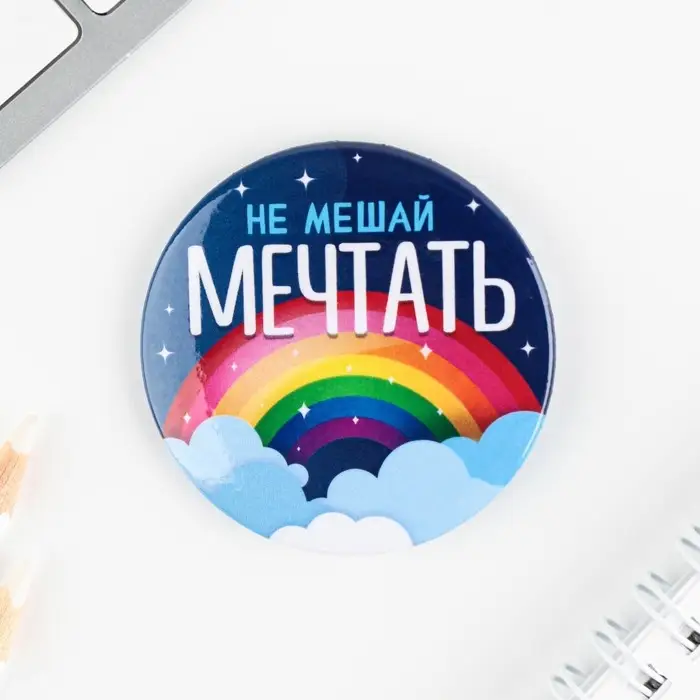 Закатной значок - это металлическая основа круглой формы с дизайном.