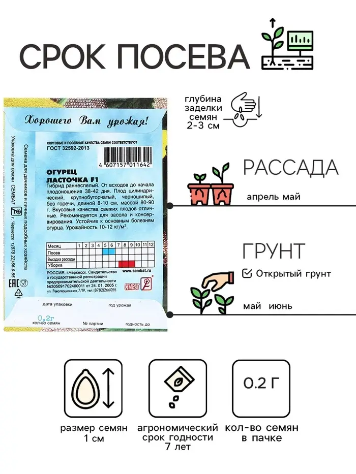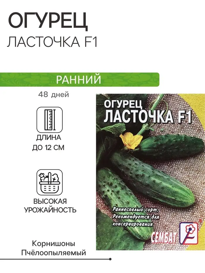Ранний и урожайный пчелоопыляемый гибрид для открытого грунта с созреванием первых плодов через 41-45 дней после всходов. Урожая хватит и "на покушать", и "на засолить". Зеленцы овальные со светлыми размытыми полосками, бугорчатость средняя, опушение черное. Средние размеры: длина - 11,4-12 см, диаметр - 3,6 см. Масса 83-113 г. Вкусовые качества - отменные, будь то свежие, соленые или маринованные огурцы. Ровные плоды годятся для засолки и консервирования в малогабаритной таре. Растение индетерминантного типа, среднерослое и средневетвистое, преимущественно женского тип цветения. Гибрид отличается комплексной устойчивостью к огуречным заболеваниям.