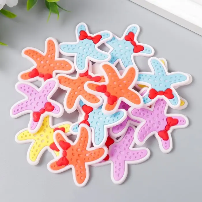 Декор для творчества резина "Морская звезда с бантиком" набор 16 шт 3,5х3,5 см