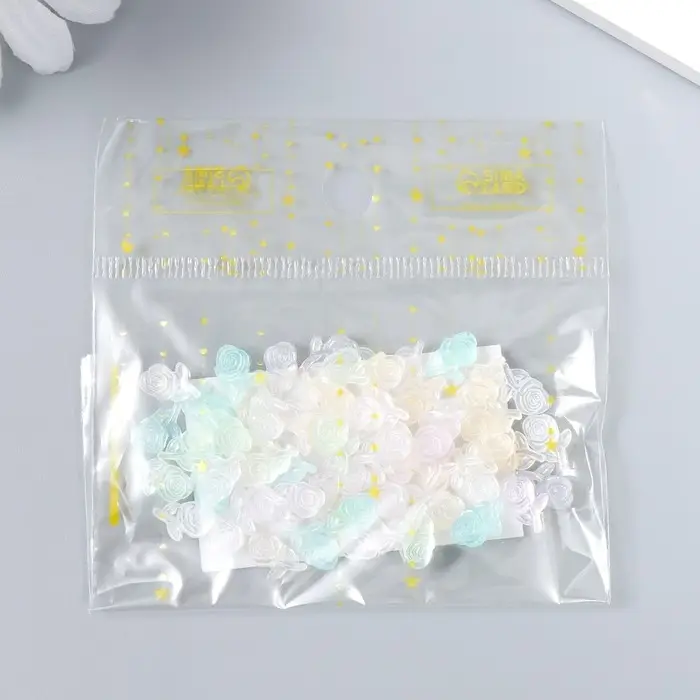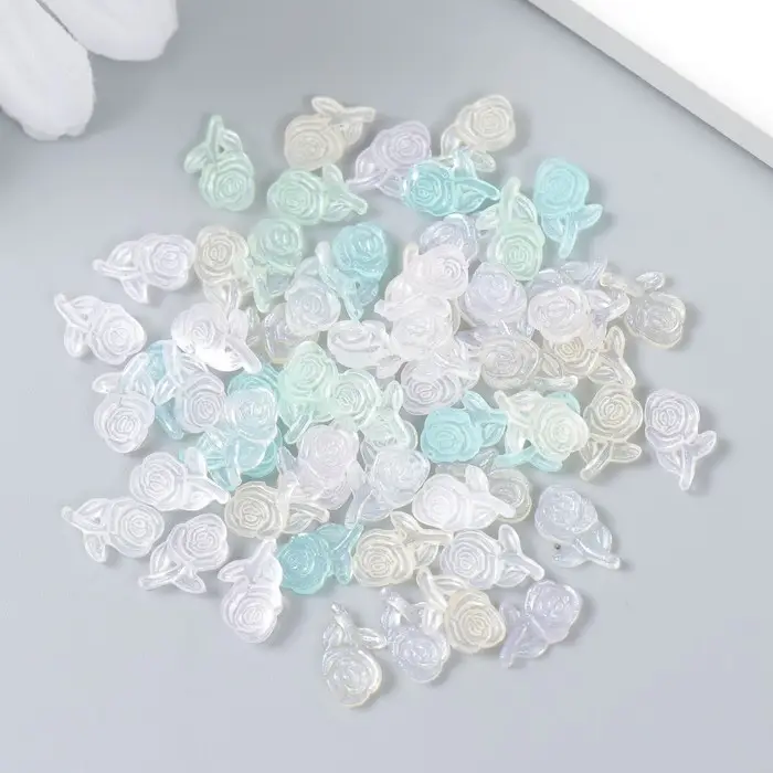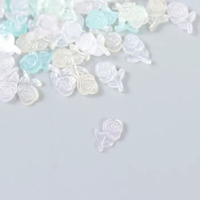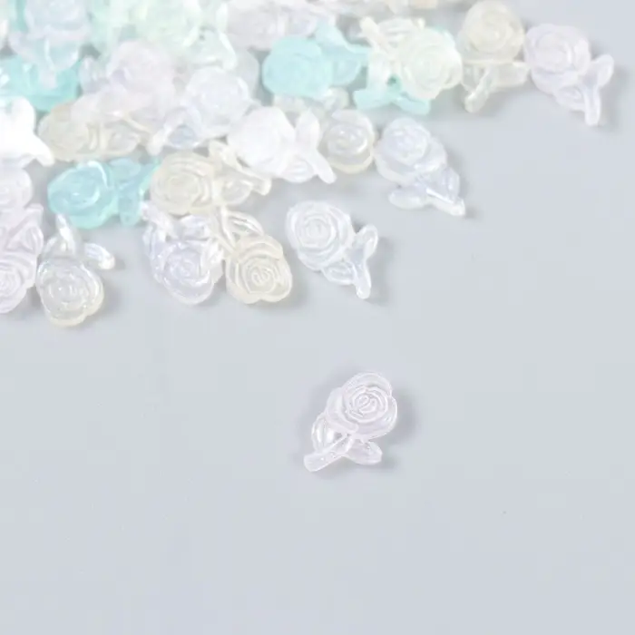 Декор для творчества пластик "Розочка на ветке" набор 60 шт полупроз. 0,88х0,53 см