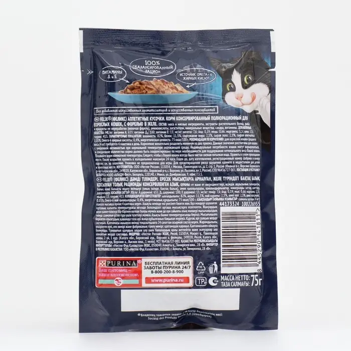 Влажный корм Felix Аппетитные кусочки для кошек, форель в желе, пауч 75 г