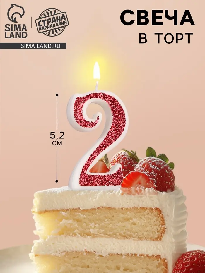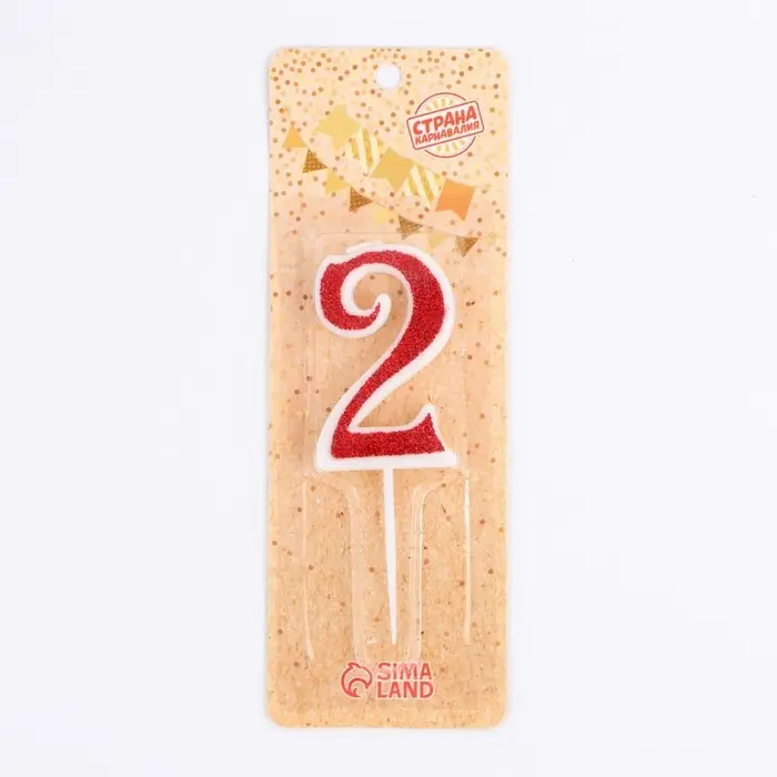 Свеча в торт на шпажке «Рубиновая коллекция», цифра 2, 5.2 см, рубиновая