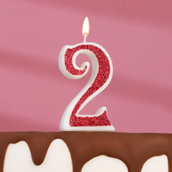 Свеча для торта "Лёд", цифра "2, сиреневая