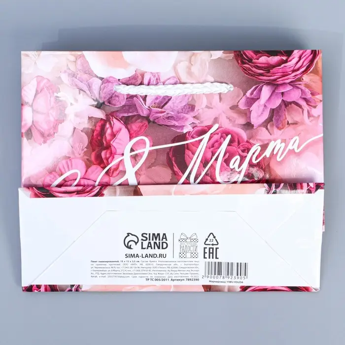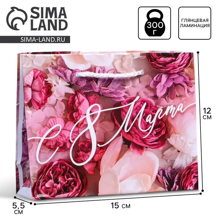 Пакет подарочный ламинированный, упаковка, «С 8 марта», S 12 х 15 х 5.5 см