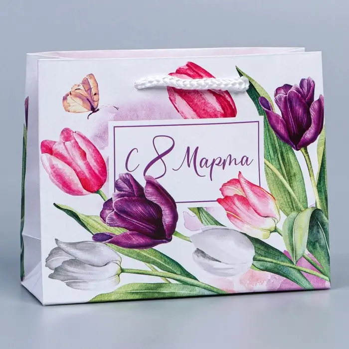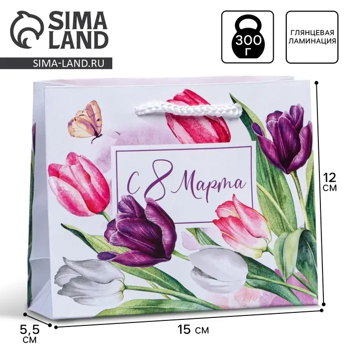 Пакет подарочный ламинированный, упаковка, «8 марта», S 12 х 15 х 5.5 см