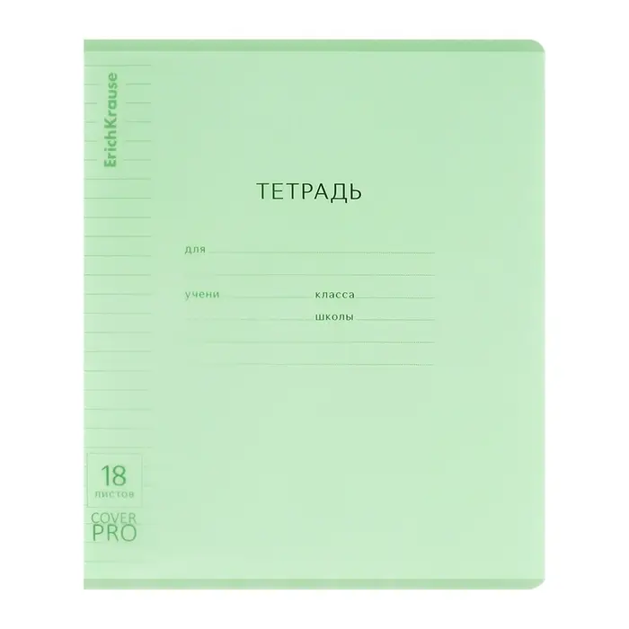 Тетрадь 18 листов в линейку, ErichKrause «Классика CoverPrо Neon», пластиковая обложка, зелёная