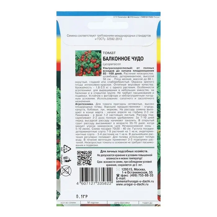 Семена Томат "Балконное чудо", детерминантный,низкорослый 0,1 г