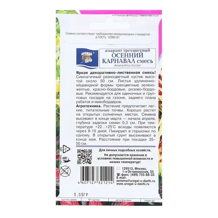 Семена цветов Амарант трёхцветная "ОСЕННИЙ КАРНАВАЛ", 0,05 г