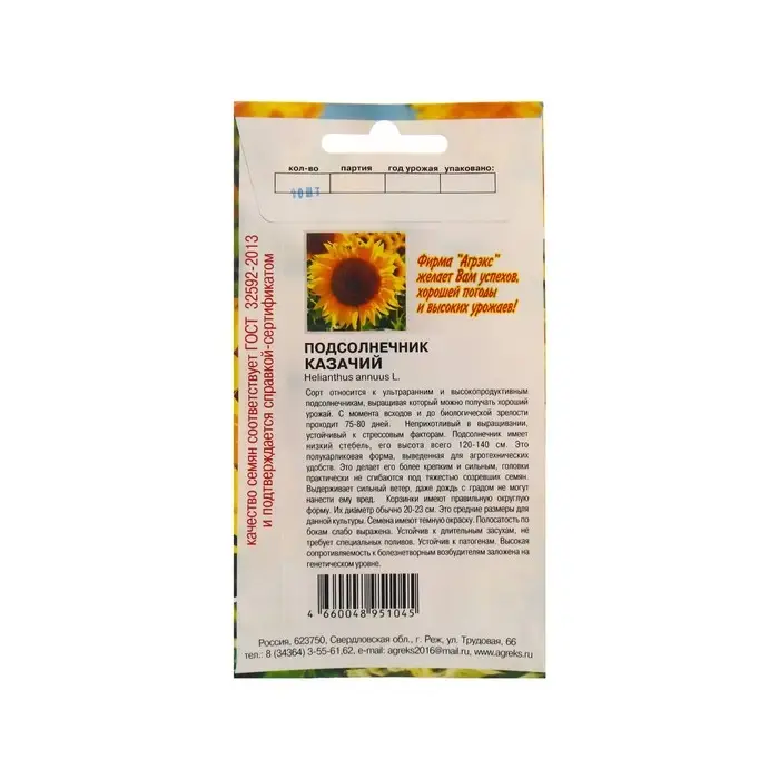 Семена Подсолнечник "Казачий ", 10 шт