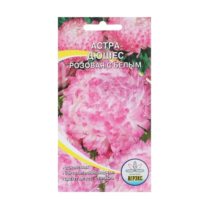 Семена Цветов Астра Дюшес Розовая с белым, 0,2 г